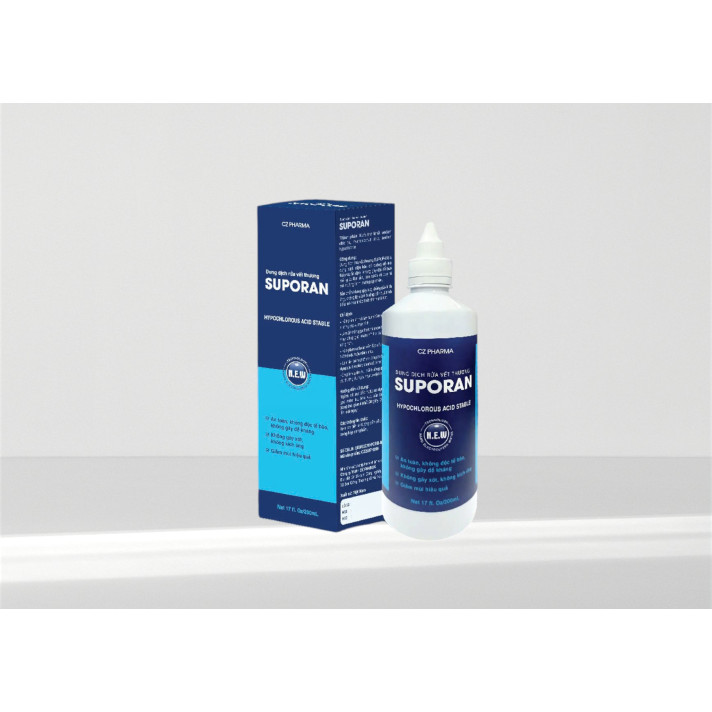 Ngâm, xịt trực tiếp hoặc dùng bông, gạc mềm lau khu vực cần làm sạch bằng dung dịch SUPORAN trong thời gian ít nhất 30 giây.