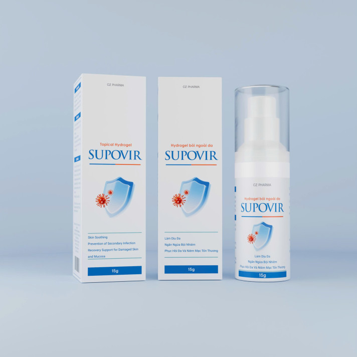 SUPOVIR là gel trong suốt, không chứa cồn, kháng sinh hay corticoid, không gây xót, an toàn khi sử dụng nhiều lần mỗi ngày, kể cả cho trẻ nhỏ và vùng da nhạy cảm.