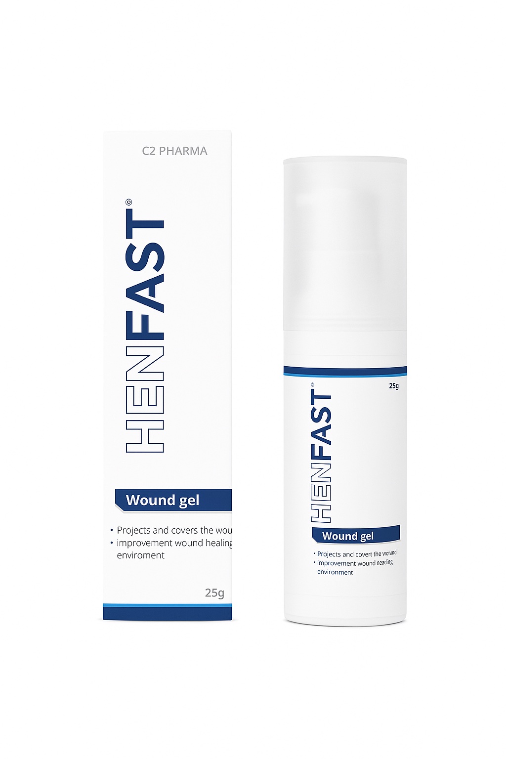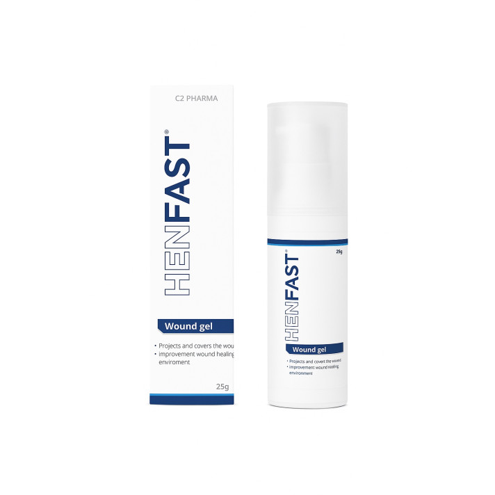 Nhờ vào dạng bào chế Hydrogel (gel ngậm nước), Henfast có khả năng hút nước và trương nở gấp 10 lần thể tích, nhờ đó sẽ tạo một lớp màng bán thấm trên bề mặt, giúp lưu giữ lại phần dịch được tiết ra từ vết thương. Từ đó mang lại nhiều tác động tích cực: