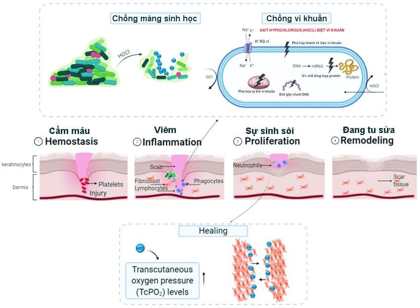 Bên cạnh tác dụng diệt khuẩn, HClO còn được biết đến là một hoạt chất điều hòa viêm ưu việt theo các cơ chế: